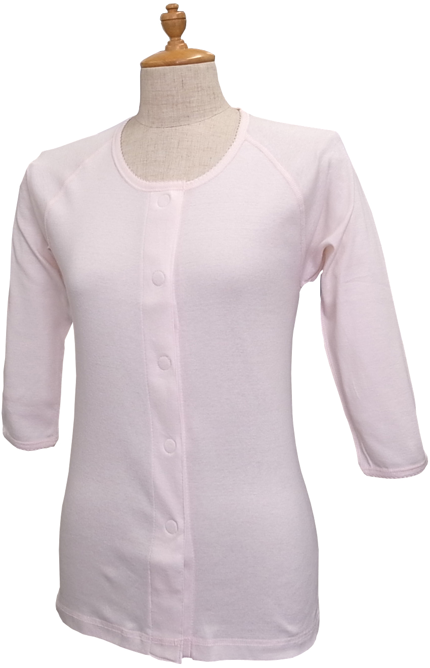 体に当たる面は完全にフラット! 婦人7分袖 ピーチ やさしい着心地のワンタッチ肌着